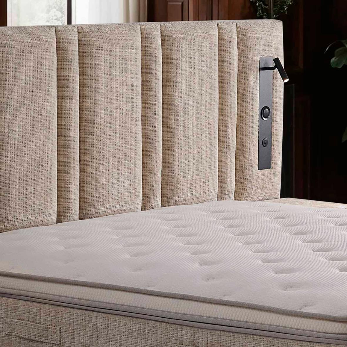 Ensemble complet : matelas avec pad réglable, sommier coffre & tête de lit